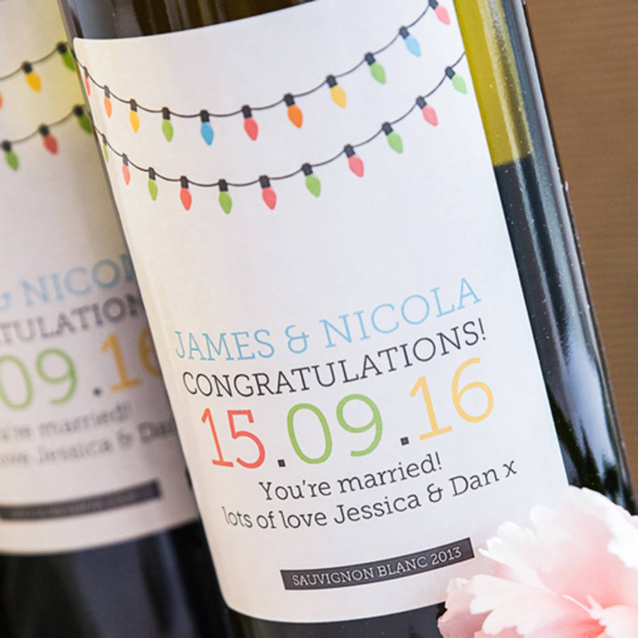 Zajímavým dárkem pro svatebčany a v současnosti velmi oblíbeným dárkem je svatební víno s vlastními etiketami, kde mohou být napsány například iniciály novomanželů, poděkování hostům či citát – fantazii se zde meze rozhodně nekladou.
